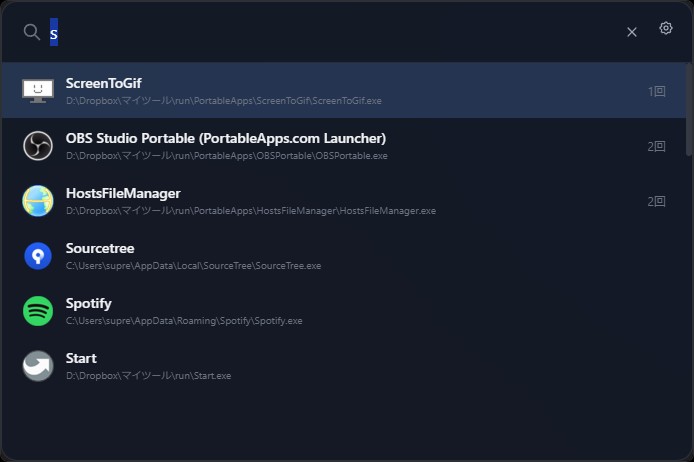 - アプリ名を入力して検索、Enterで起動