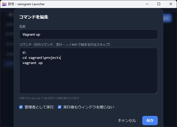 - バッチコマンドをランチャーに登録可能