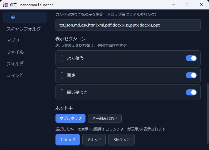 NANOGRAM Launcher は、キーボード操作を中心とした軽量・高速なアプリケーションランチャーです。Ctrl キーのダブルタップ(変更可能)で即座に起動し、インクリメンタル検索でアプリを素早く見つけて起動できます。